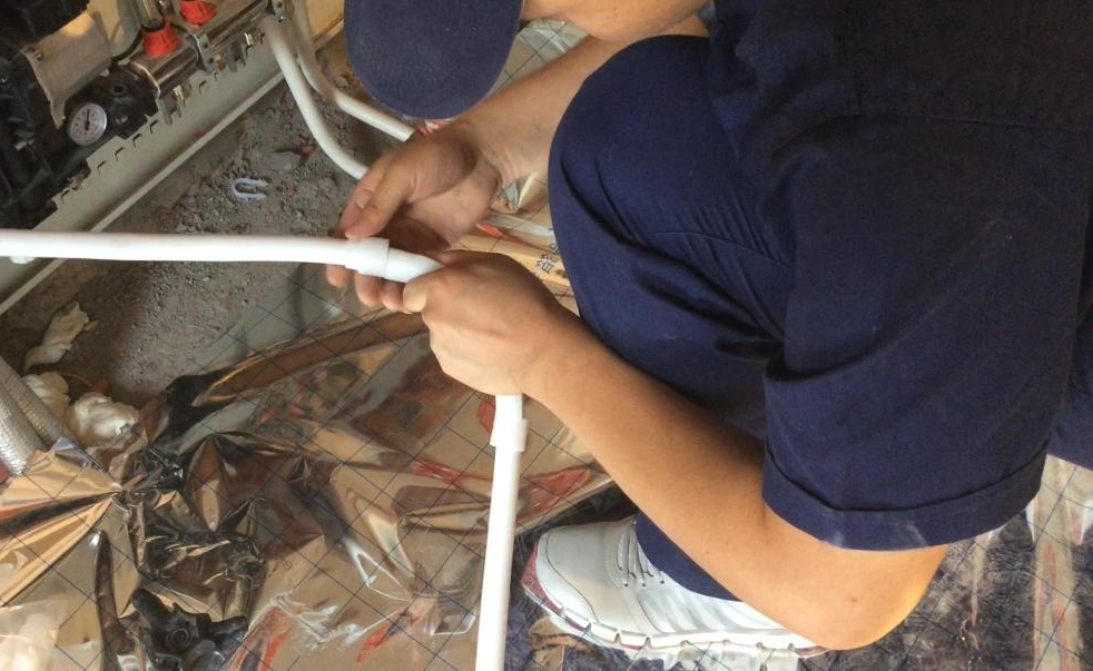 4、地面管道施工不应有接头,在铺设过程中如有管道损坏或者渗漏现象,应当整根更换,严禁拼接使用。铺设每个回路长度也都有限制。16x2.0mm管道一个回路最大的铺设长度应小于90m;20x2.0mm管道一个回路最大铺设长度应小于120m。
