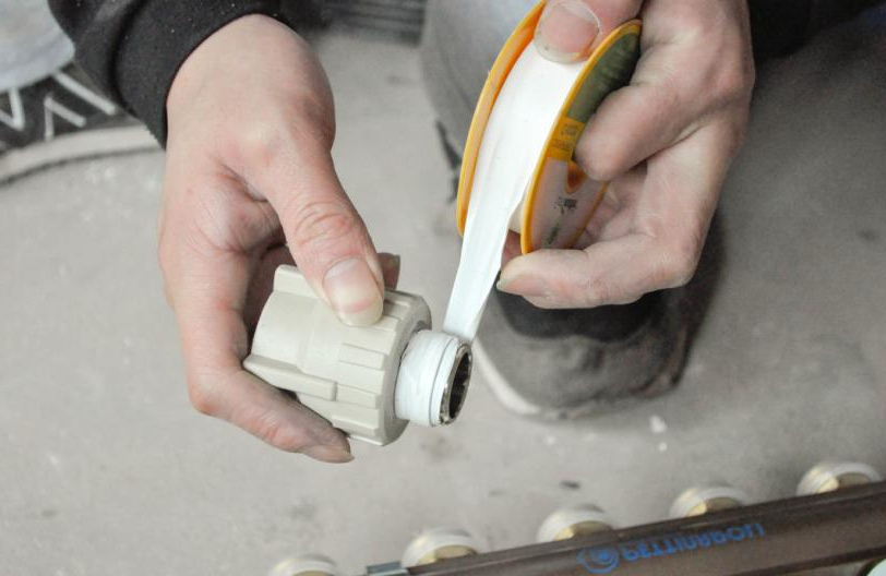 3、生料带施工时候要顺时针缠绕,在螺纹连接处要保证其密封效果的前提下缠绕圈数不易过多,防止对连接件造成破坏。