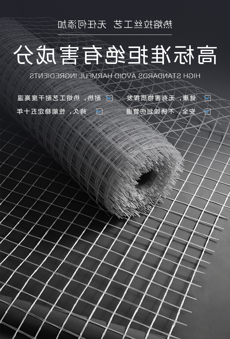 安全保障硅晶网以非人工熔融石英石为原材,在融入磨砂预算编制而成,取之于很自然,比较环保性。与一般钢线网相比较,硅晶网没能腐蚀地暖管通风管道的威协,且众横向拉申力达到1000N,就是款欧洲其他国家长见的钢线网用作食品。