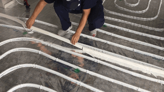 2、地暖反射膜铺设在保温板与地暖管(发热体)之间,铺设时一定要平整,尽量减少褶皱。
