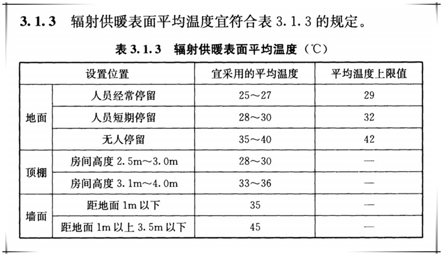 室内明确提出域环境温度应参考《JGJ 142-2012 大范围地扩散集中供热供冷方法指导书》3.1.3的条件设施,详情下表: