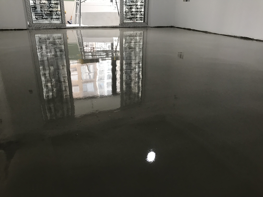 4.倾倒、摊开自流平: