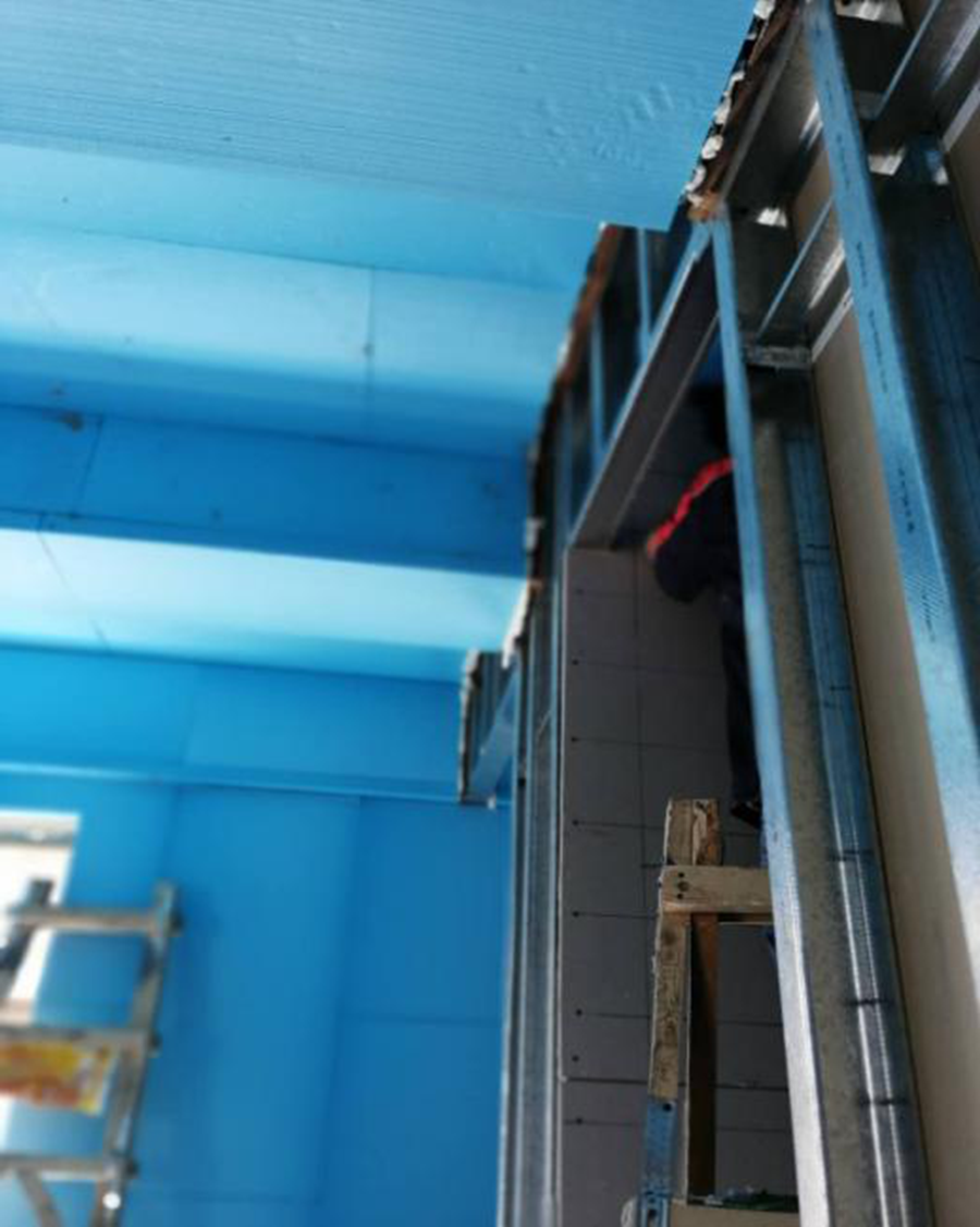 举例:地下室用断桥木进行柱拐角处和房梁内保温,四周墙体就可以用薄抹灰方式进行安装,点框法和梅花法均可。空隙地方可以用发泡剂隔绝,这样阻断热桥可以降低地下室能耗,热舒适性和健康居住环境也会更好。