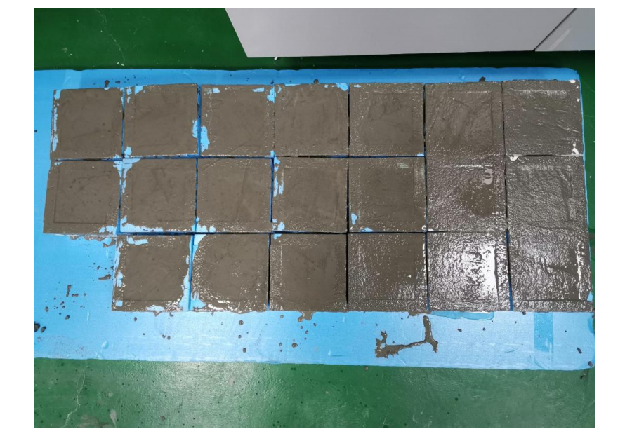 如图 2所示,试块外侧用内空间尺寸为 100mm*100mm*70mm的样盒包围固定,并在上层放置硅晶网以起到加固防开裂作用,硅晶网尺寸为100mm*100mm。