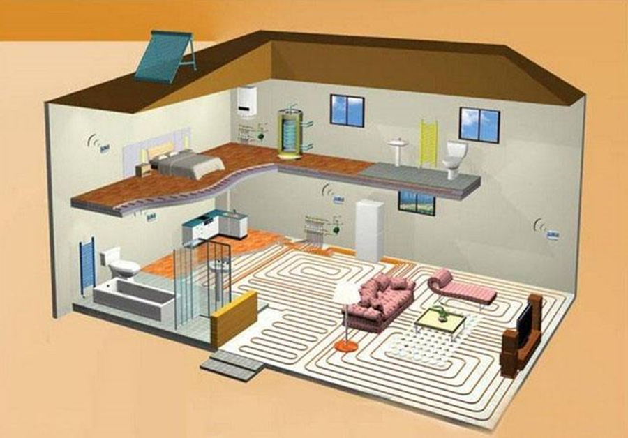 和暖通公司确定采暖区域和面积,确定锅炉、分集水器、预埋线管的位置。