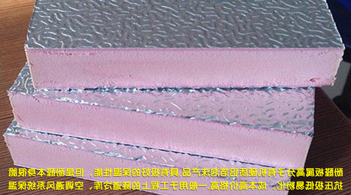 3.酚醛板属高分子有机硬质铝箔泡沫产品,是由热固性酚醛树脂发泡而成。具有极好的保温性能,但是酚醛本身很脆,抗压极低易粉化,成本高价格高,不大适应于外墙与地面保温材料。一般用于工程上的隧道冷库、空调通风系统领域保温