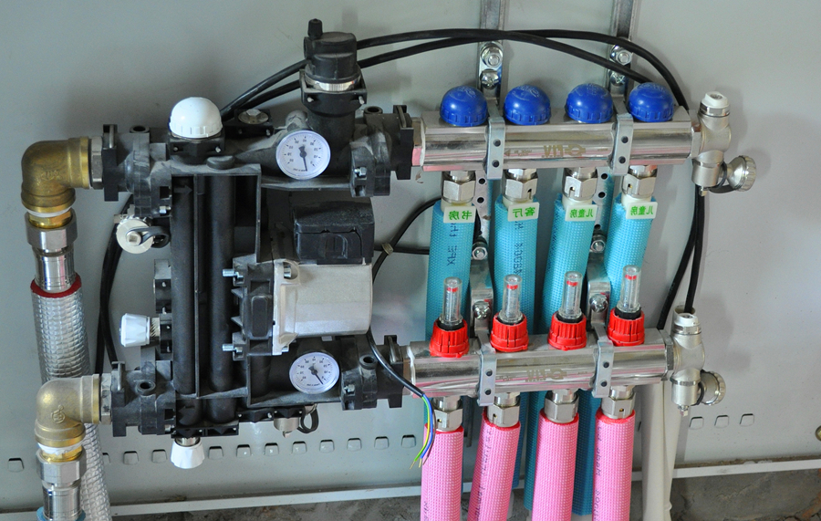 1、水压试验前先冲洗分集水器和供回水主管道,防止大管中的杂物进入室内盘管;