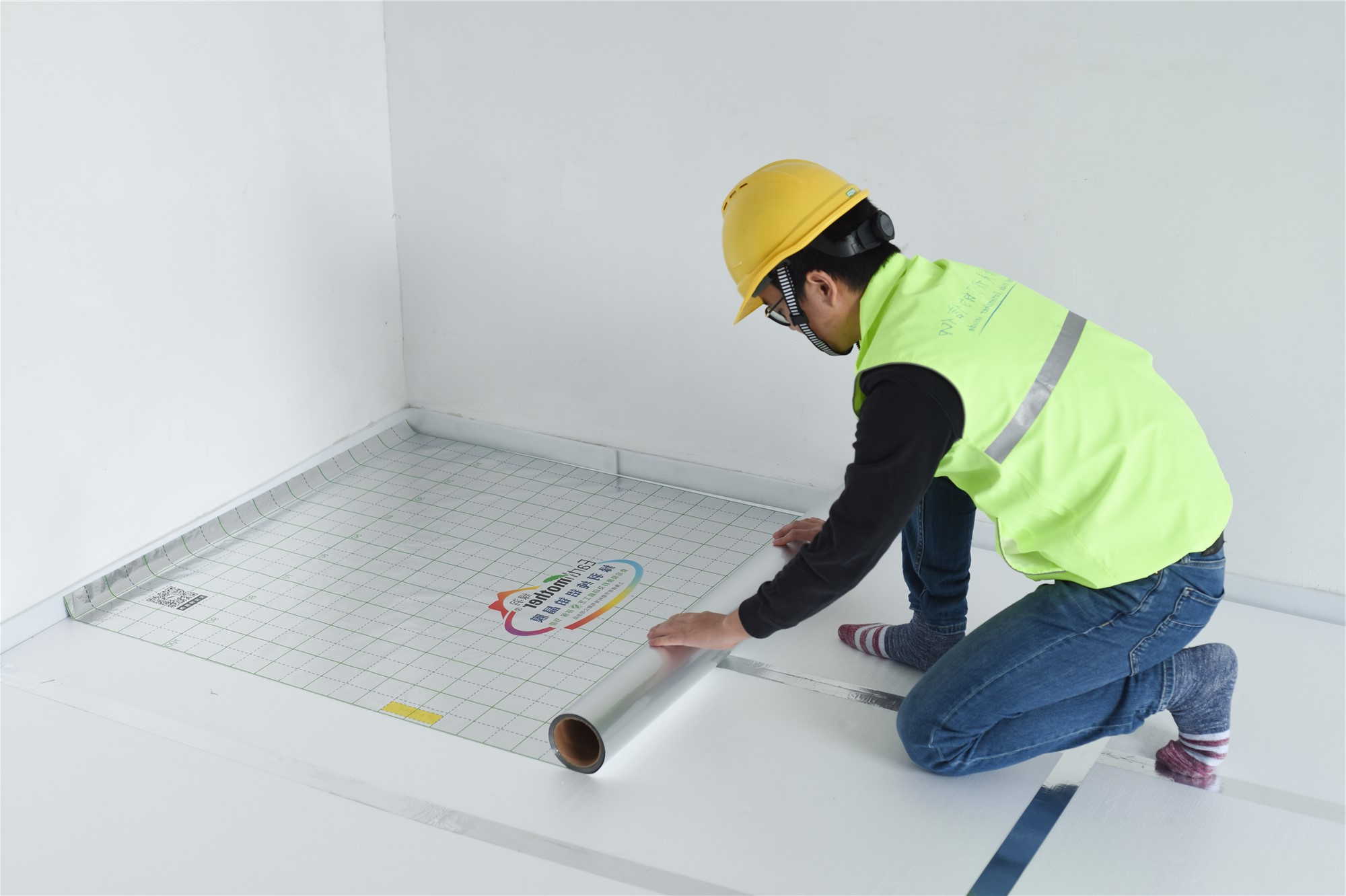 3、从外墙(热负荷大)往内铺设,先用整板后用切割板,注意错缝拼接。总体原则缝隙越小越少越好;