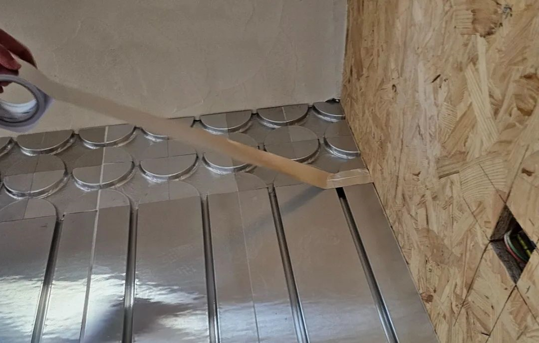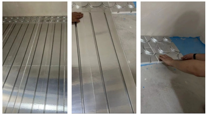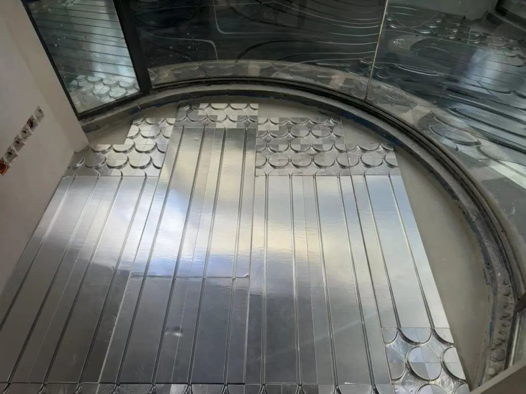 处理方案:保证双数管路的情况下尽量铺设轻铝板,根据盘管方向,在两侧铺设万向头,中间铺直板,测量长度,合理裁切轻铝板。以保证尽可能多走管道,增加覆盖面积,让采暖效果最大化。